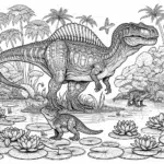 . Discover the enchanting world of baby Spinosaurus with this unique coloring page. Immerse yourself in the prehistoric landscape filled with water lilies and playful frogs as you bring this adorable baby dinosaur to life with your coloring skills. Perfect for children and dino enthusiasts, this intricate line drawing is a must-have addition to any […]